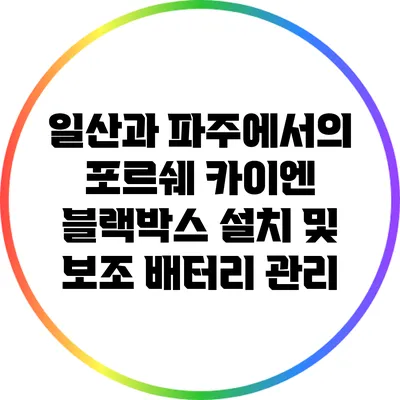 일상에서 자동차는 단순한 이동 수단이 아닌 우리의 안전과 편의를 책임지는 필수품이 되었어요. 특히 고급차인 포르쉐 카이엔을 운전하면서 안전을 더욱 신경 쓰게 되는 것은 당연한 일이죠. 이러한 이유로 블랙박스 설치와 보조 배터리에 대한 이해는 더욱 중요합니다. 이번 포스트에서는 일산과 파주에서 포르쉐 카이엔의 블랙박스를 어떻게 설치하고, 보조 배터리를 관리하는 방법에 대해 자세히 알아보도록 할게요.