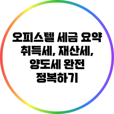 A2: 오피스텔 구입 시 취득세, 재산세, 양도세가 발생하며, 각각의 세금 구조와 계산 방법을 이해하는 것이 중요합니다.