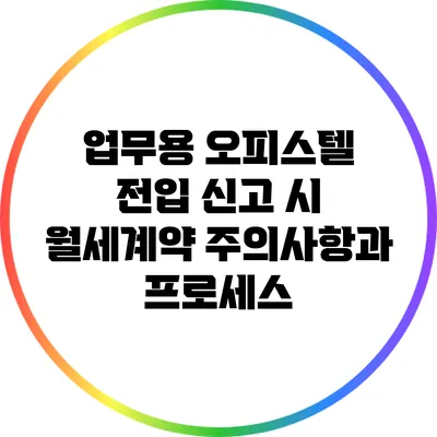 업무용 오피스텔에서 전입 신고와 월세계약을 할 때는 여러 주의사항을 점검하는 것이 중요해요. 전입 신고를 소홀히 하면 향후 불이익을 겪을 수 있으며, 월세계약도 신중하게 진행해야 합니다. 따라서, 계약서를 철저히 검토하고, 신고 절차를 정확히 따라야 해요. 이러한 기본적인 절차를 잘 지키는 것이 문제가 발생하지 않는 가장 좋은 방법이에요.