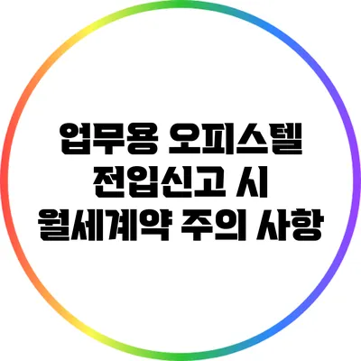 업무용 오피스텔을 이용하는 사람들에게 전입신고와 월세계약은 매우 중요한 이슈입니다. 이런 과정에서 발생할 수 있는 여러 가지 주의사항을 잘 알아두면 나중에 큰 불편을 줄일 수 있어요. 업무용 오피스텔을 계약하기 전에 꼭 명심해야 할 사항들을 정리해보겠습니다.