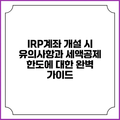 IRP계좌 개설 시 유의사항과 세액공제 한도에 대한 완벽 가이드