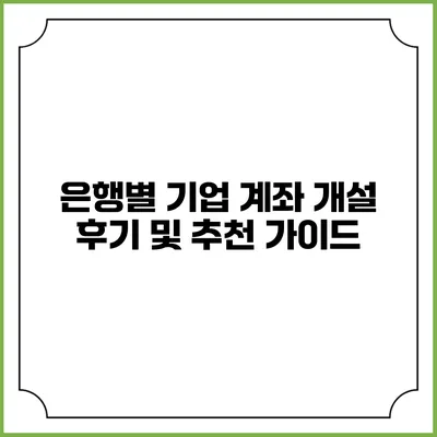 은행별 기업 계좌 개설에 대한 정보와 후기를 바탕으로 간략한 가이드를 제공했어요. 기업 계좌는 사업 운영에 필수적인 요소로, 선택 시 신중히 고려해야 하며, 다양한 은행을 비교하고 필요한 서비스를 확인하는 것이 중요해요.